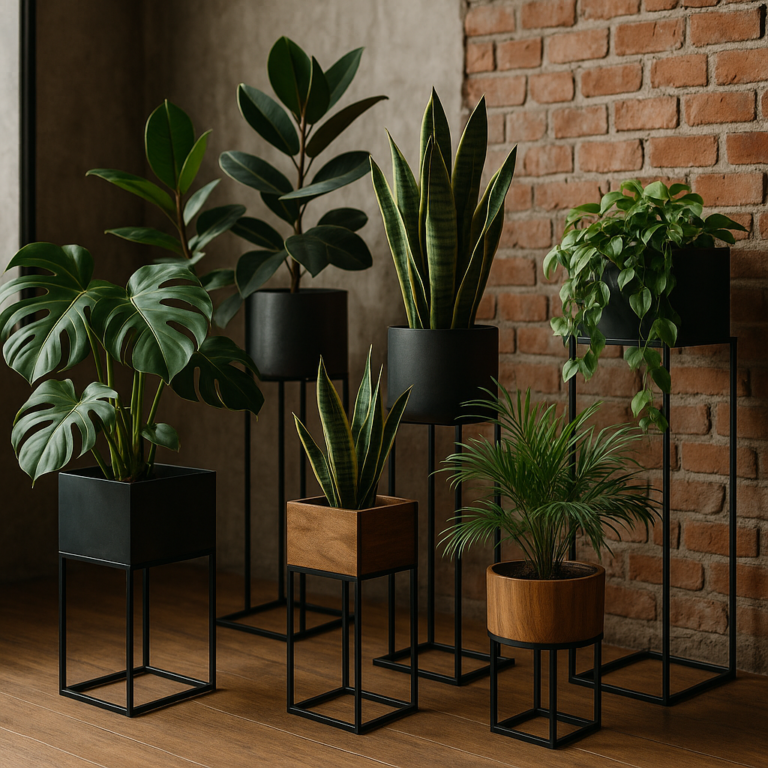 Aby zachować spójność stylu, warto wybierać donice z metalu lub drewna – najlepiej w czarnych, grafitowych lub miedzianych odcieniach. Ich prosty design podkreśla geometrię wnętrza i eksponuje naturalne piękno roślin.